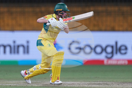 Australia's Beth Mooney plays a shot during the ICC Women's Cricket World Cup match between Australia and South Africa in Indore, India, Saturday, Oct. 25, 2025. (AP Photo/Ajit Solanki)