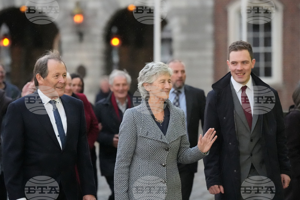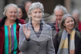 Left-wing independent presidential candidate Catherine Connolly arrives at Dublin Castle for the count in Ireland's presidential election to replace Michael D. Higgins, who has served the maximum two seven-year terms. Picture date: Saturday October 25, 2025. PA Photo. Photo credit should read: Niall Carson/PA via AP)