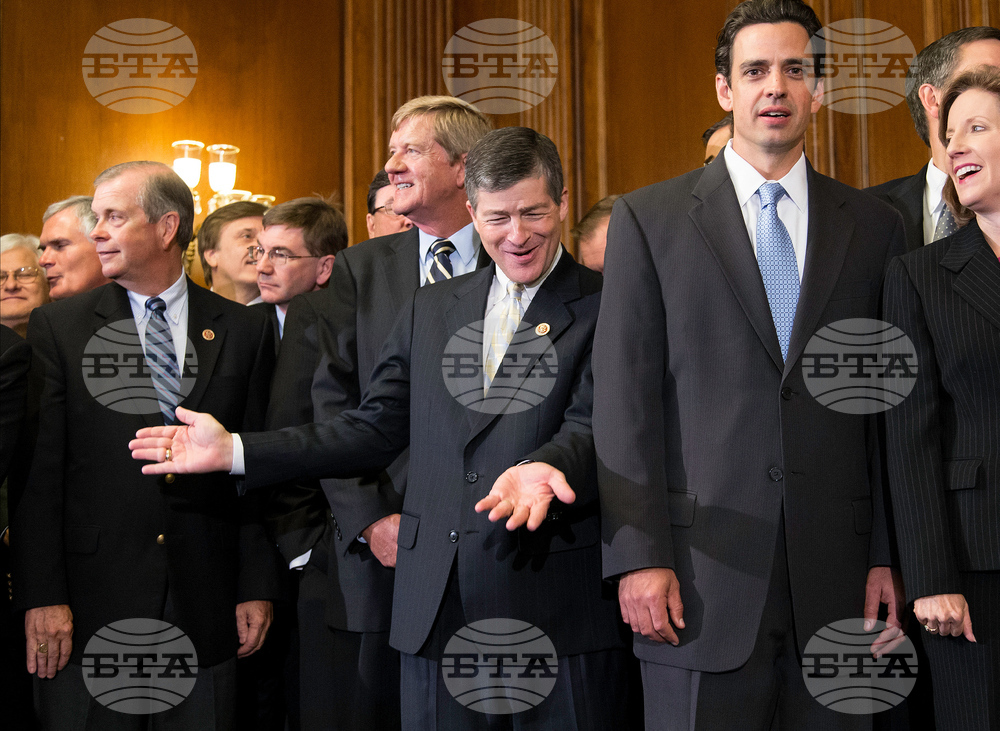 FILE - Rep. Jeb Hensarling, R-Texas, center, celebrates with fellow conservatives after Republicans passed a bill that would prevent a government shutdown while crippling the health care law that was the signature accomplishment of President Barack Obama's first term, Sept. 20, 2013, at the Capitol in Washington. (AP Photo/J. Scott Applewhite, File)