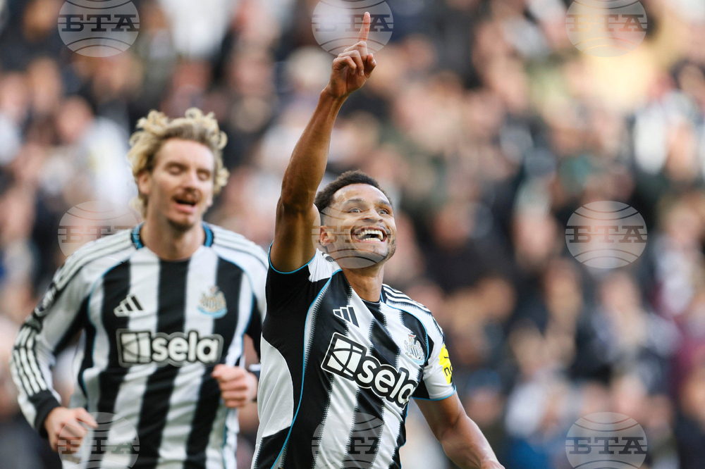 Newcastle United's Jacob Murphy celebrates scoring during the English Premier League soccer match between Newcastle United and Fulham at St James' Park, Newcastle-upon-Tyne, England, Saturday Oct. 25, 2025. (Richard Sellers/PA via AP)
