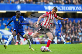 Sunderland's Enzo Le Fee, right, vies for the ball with Chelsea's Reece James during the English Premier League soccer match between Chelsea and Sunderland in London, Saturday, Oct. 25, 2025. (AP Photo/Joanna Chan)