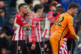 Sunderland players celebrate with their fans at the end of the English Premier League soccer match between Chelsea and Sunderland in London, Saturday, Oct. 25, 2025. (AP Photo/Joanna Chan)