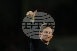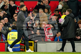 Manchester United's head coach Ruben Amorim applauds as he leaves after the English Premier League soccer match between Manchester United and Brighton & Hove Albion in Manchester, England, Saturday, Oct. 25, 2025. (AP Photo/Dave Thompson)