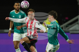 Newcastle United's Nick Woltemade, left, and Fulham's Kenny Tete in action during the English Premier League soccer match between Newcastle United and Fulham at St James' Park, Newcastle-upon-Tyne, England, Saturday Oct. 25, 2025. (Richard Sellers/PA via AP)