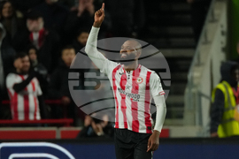 Brentford's Dango Ouattara celebrates after scoring during the Premier League soccer match between Brentford and Liverpool in London, Saturday, Oct. 25, 2025. (AP Photo/Dave Shopland)
