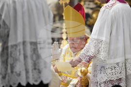 Cardinal Raymond Leo Burke celebrates the old Latin Mass for pilgrims in St. Peter's Basilica, at the Vatican, Saturday, Oct. 25, 2025. (AP Photo/Alessandra Tarantino)