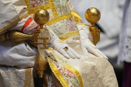 A man holds a rosary as Cardinal Raymond Leo celebrates an old Latin Mass for pilgrims in St. Peter's Basilica, at the Vatican, Saturday, Oct. 25, 2025. (AP Photo/Alessandra Tarantino)