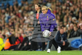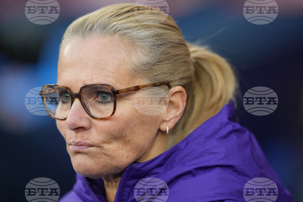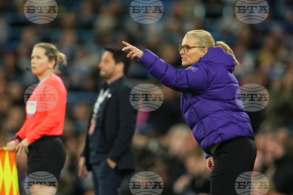 England's head coach Sarina Wiegman during an international women's friendly soccer match between England and Brazil in Manchester, England, Saturday, Oct. 25, 2025. (AP Photo/Jon Super)