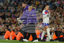 England's Alessia Russo warms up prior to the international women's friendly soccer match between England and Brazil in Manchester, England, Saturday, Oct. 25, 2025. (AP Photo/Jon Super)
