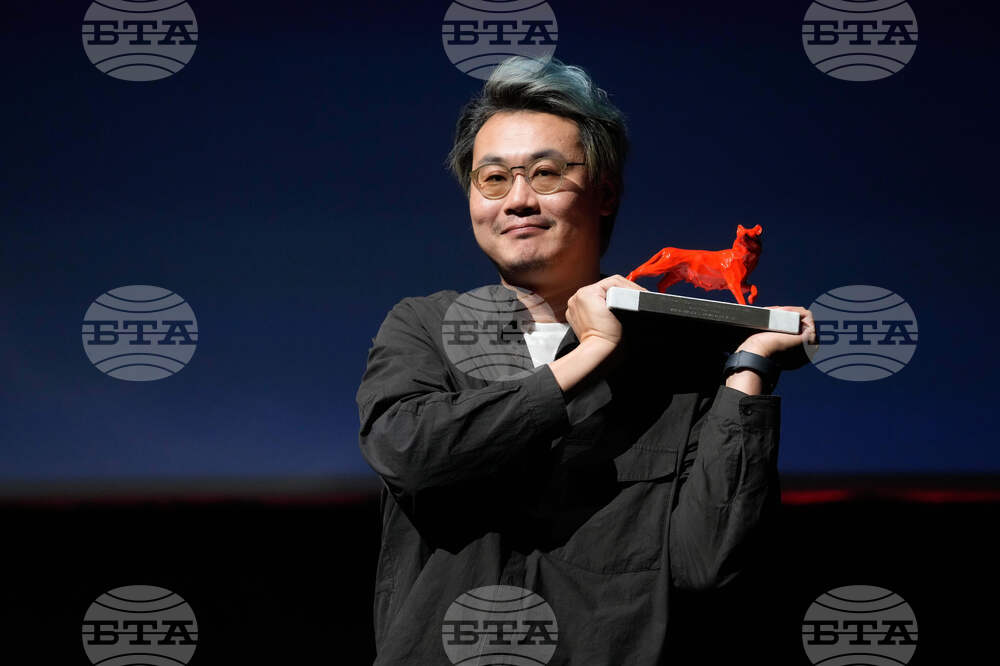 Wang Tong poses for photographers with the Best Director award received for the movie "Wild Nights, Tamed Beasts" at the Rome Film Festival, in Rome, Saturday, Oct. 25, 2025. (AP Photo/Gregorio Borgia)
