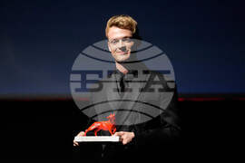 Anson Boon poses for photographers with the Best Actor award received for the movie "Good Boy" at the Rome Film Festival, in Rome, Saturday, Oct. 25, 2025. (AP Photo/Gregorio Borgia)