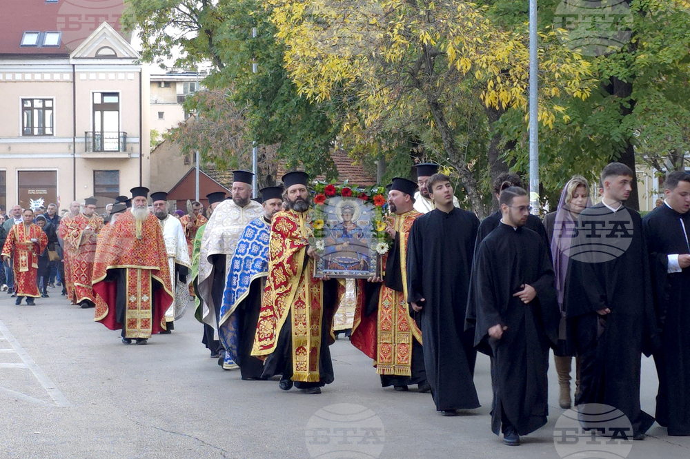 Видин (25 октомври 2025) В навечерието на Димитровден във Видин се състоя литийно шествие с частица от мощите на Св. Димитър, които се съхраняват в едноимения катедрален храм. Видинският митрополит Пахомий (вдясно) отслужи архиерейска вечерня с петохлебие.