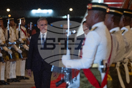Canadian Prime Minister Mark Carney walks past an honour guard as they arrive in Kuala Lumpur, Malaysia, Saturday, Oct. 25, 2025. (Adrian Wyld /The Canadian Press via AP)