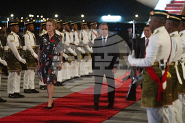 Canadian Prime Minister Mark Carney and his wife Diana Fox Carney walk past an honour guard as they arrive in Kuala Lumpur, Malaysia, Saturday, Oct. 25, 2025. (Adrian Wyld /The Canadian Press via AP)