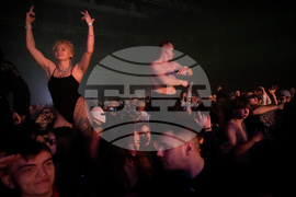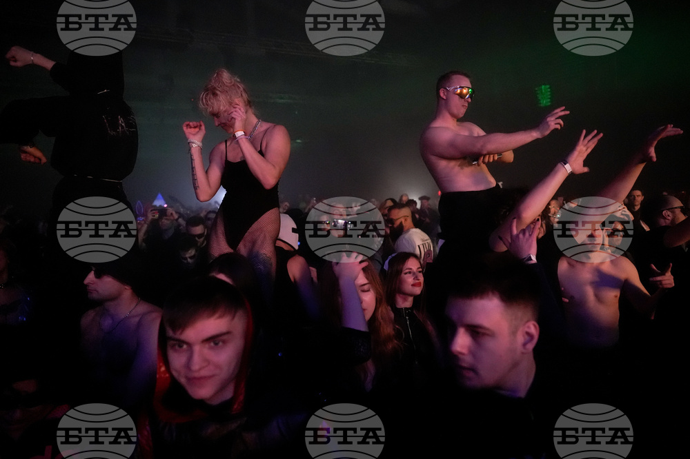 People dance during a Halloween rave in Kyiv, Ukraine, Saturday, Oct. 25, 2025. (AP Photo/Julia Demaree Nikhinson)