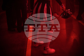 A woman dressed as a cheerleader dances during a Halloween rave in Kyiv, Ukraine, Saturday, Oct. 25, 2025. (AP Photo/Julia Demaree Nikhinson)