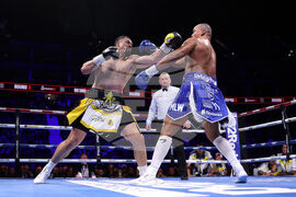 Fabio Wardley, right, punches Joseph Parker during a WBO world heavyweight title bout in, London, England, Saturday, Oct. 25, 2025. (Steven Paston/PA via AP)