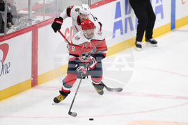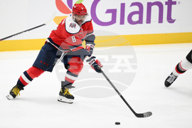 Washington Capitals left wing Alex Ovechkin (8) skates with the puck during the second period of an NHL hockey game Ottawa Senators, Saturday, Oct. 25, 2025, in Washington. (AP Photo/Nick Wass)