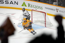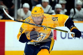 Nashville Predators center Steven Stamkos chases after the puck during the first period of an NHL hockey game between the Predators and the Los Angeles Kings Saturday, Oct. 25, 2025, in Nashville, Tenn. (AP Photo/Mark Humphrey)