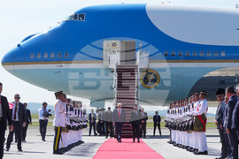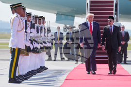 President Donald Trump walks down the stairs of Air Force One as he arrives at Kuala Lumpur International Airport in Sepang, Malaysia, Sunday, Oct. 26, 2025. (AP Photo/Mark Schiefelbein)