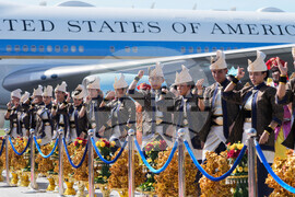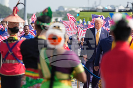 Dancers perform as President Donald Trump boards Air Force One at Kuala Lumpur International Airport in Sepang, Malaysia, as he departs for Japan, Monday, Oct. 27, 2025. (AP Photo/Mark Schiefelbein)