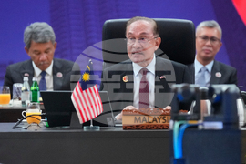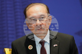 Malaysian Prime Minister Anwar Ibrahim addresses a working session of the ASEAN Summit in Kuala Lumpur, Malaysia, Sunday, Oct. 26, 2025. (AP Photo/Mark Schiefelbein)