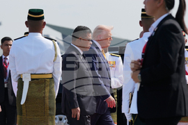 President Donald Trump walks with Malaysia's Prime Minister Anwar Ibrahim as he arrives at Kuala Lumpur International Airport in Sepang, Malaysia, Sunday, Oct. 26, 2025. (AP Photo/Mark Schiefelbein)