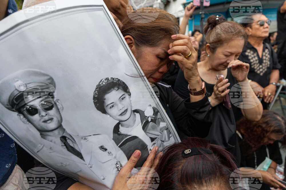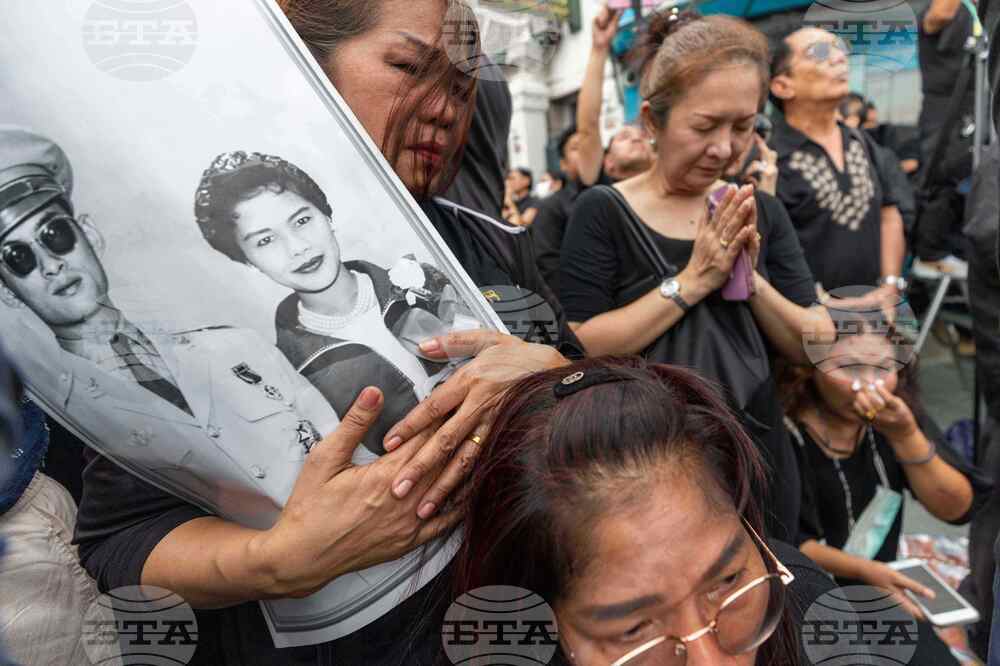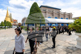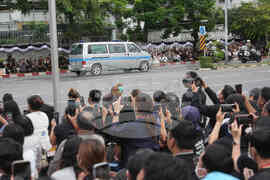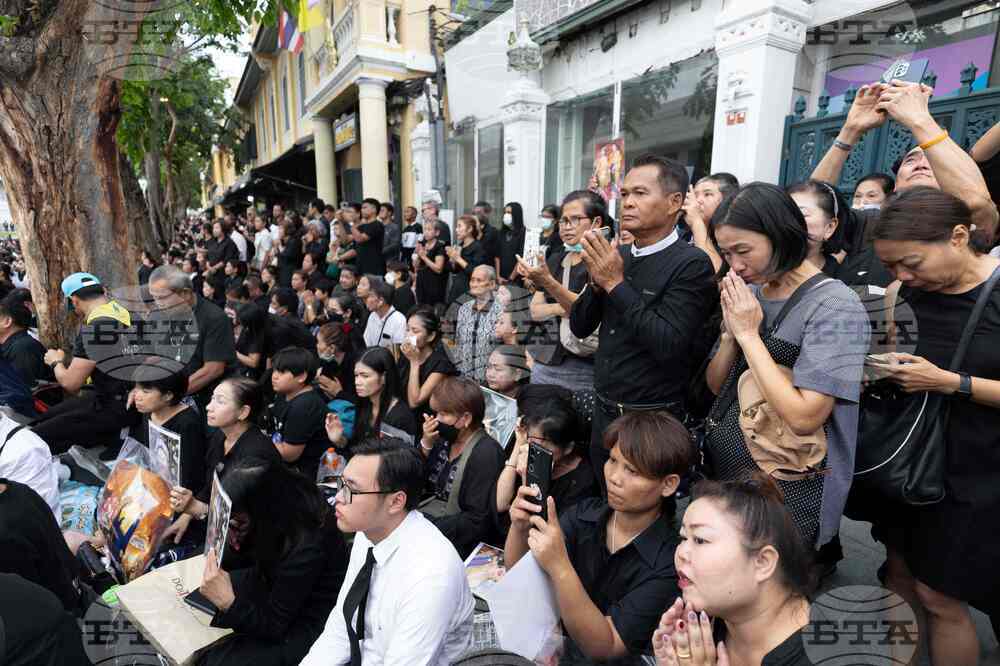 Mourners gather outside Grand Palace, in Bangkok, Thailand, Sunday, Oct. 26, 2025.(AP Photo/ Wason Wanitchakorn)