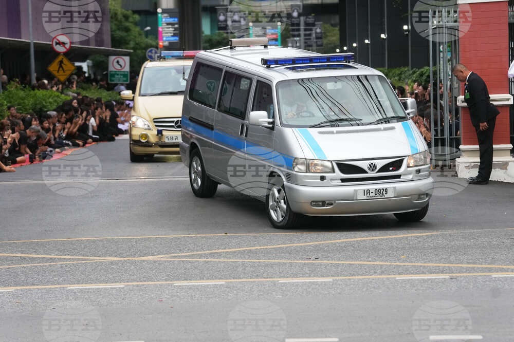 The vehicle believed to be transporting the body of Queen Mother Sirikit, drives from Chulalongkorn Hospital to the Grand Palace, in Bangkok, Thailand, Sunday, Oct. 26, 2025. (AP Photo/Sakchai Lalit)