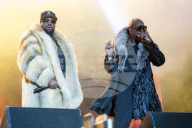 Big Boi, left, and Sleepy Brown, right, perform during the Dungeon Family Reunion at One Musicfest on Saturday, Oct. 25, 2025, at Piedmont Park in Atlanta. (Photo by Paul R. Giunta/Invision/AP)