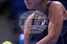 Czech Republic's Linda Noskova plays a shot against Switzerland's Belinda Bencic during the women's singles final at the Pan Pacific Open WTA 500 tennis tournament at Ariake Coliseum, in Tokyo, Sunday, Oct. 26, 2025. (AP Photo/Louise Delmotte)