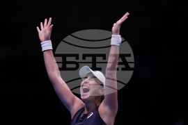 Switzerland's Belinda Bencic celebrates after winning against Czech Republic's Linda Noskova in the final match of the Pan Pacific Open women's tennis tournament at Ariake Coliseum, in Tokyo, Sunday, Oct. 26, 2025. (AP Photo/Louise Delmotte)