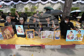 Mourners gather outside Chulalongkorn Hospital in Bangkok, Thailand, Sunday, Oct. 26, 2025. (AP Photo/Sakchai Lalit)