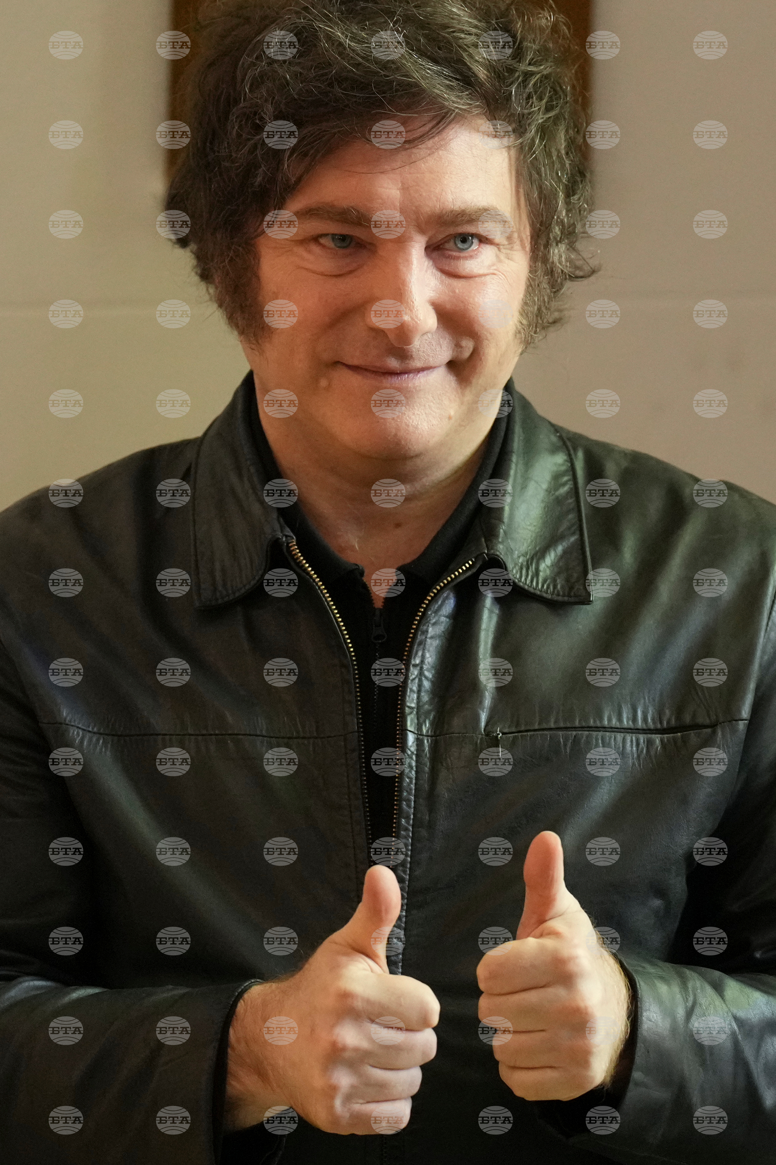 Argentina's President Javier Milei votes during legislative midterm elections in Buenos Aires, Argentina, Sunday, Oct. 26, 2025. (AP Photo/Natacha Pisarenko)
