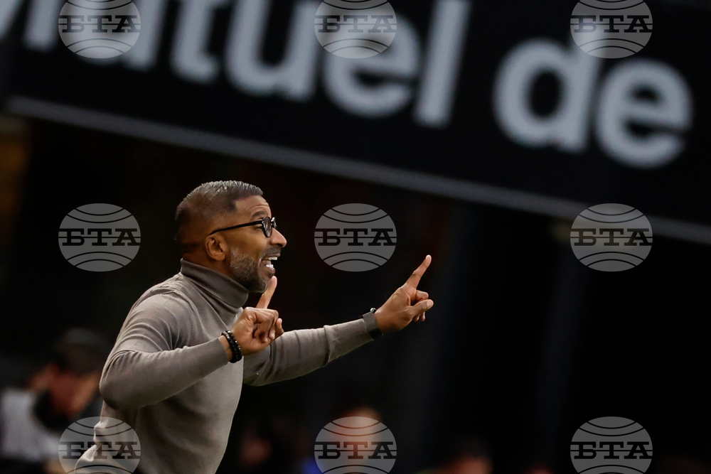 Rennes' head coach Habib Beye during the French League One soccer match between Rennes and Nice, Sunday Oct. 26, 2025 in Rennes, western France. (AP Photo/Jeremias Gonzalez)