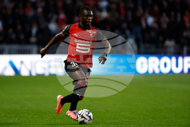 Rennes' Alidu Seidu controls the ball during the French League One soccer match between Rennes and Nice, Sunday Oct. 26, 2025 in Rennes, western France. (AP Photo/Jeremias Gonzalez)