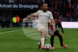 Rennes' Ludovic Blas controls the ball during the French League One soccer match between Rennes and Nice, Sunday Oct. 26, 2025 in Rennes, western France. (AP Photo/Jeremias Gonzalez)