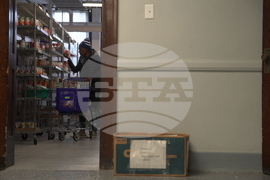 A volunteer bags groceries to a man at the Central Christian Church food bank in Indianapolis, Saturday Oct. 25, 2025 (AP Photo/Obed Lamy)