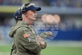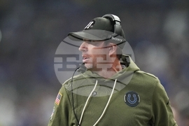 Indianapolis Colts head coach Shane Steichen watches during the first half an NFL football game against the Tennessee Titans, Sunday, Oct. 26, 2025, in Indianapolis. (AP Photo/AJ Mast)
