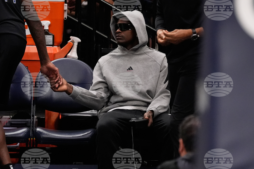Minnesota Timberwolves guard Anthony Edwards sits on the bench during the first half of an NBA basketball game against the Indiana Pacers, Sunday, Oct. 26, 2025, in Minneapolis. (AP Photo/Abbie Parr)