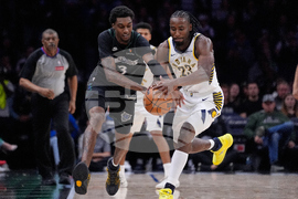 Minnesota Timberwolves forward Jaden McDaniels (3) and Indiana Pacers guard Aaron Nesmith (23) reach for possession of the ball during the second half of an NBA basketball game, Sunday, Oct. 26, 2025, in Minneapolis. (AP Photo/Abbie Parr)
