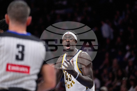 Indiana Pacers forward Pascal Siakam (43) reacts toward a referee during the second half of an NBA basketball game against the Minnesota Timberwolves, Sunday, Oct. 26, 2025, in Minneapolis. (AP Photo/Abbie Parr)
