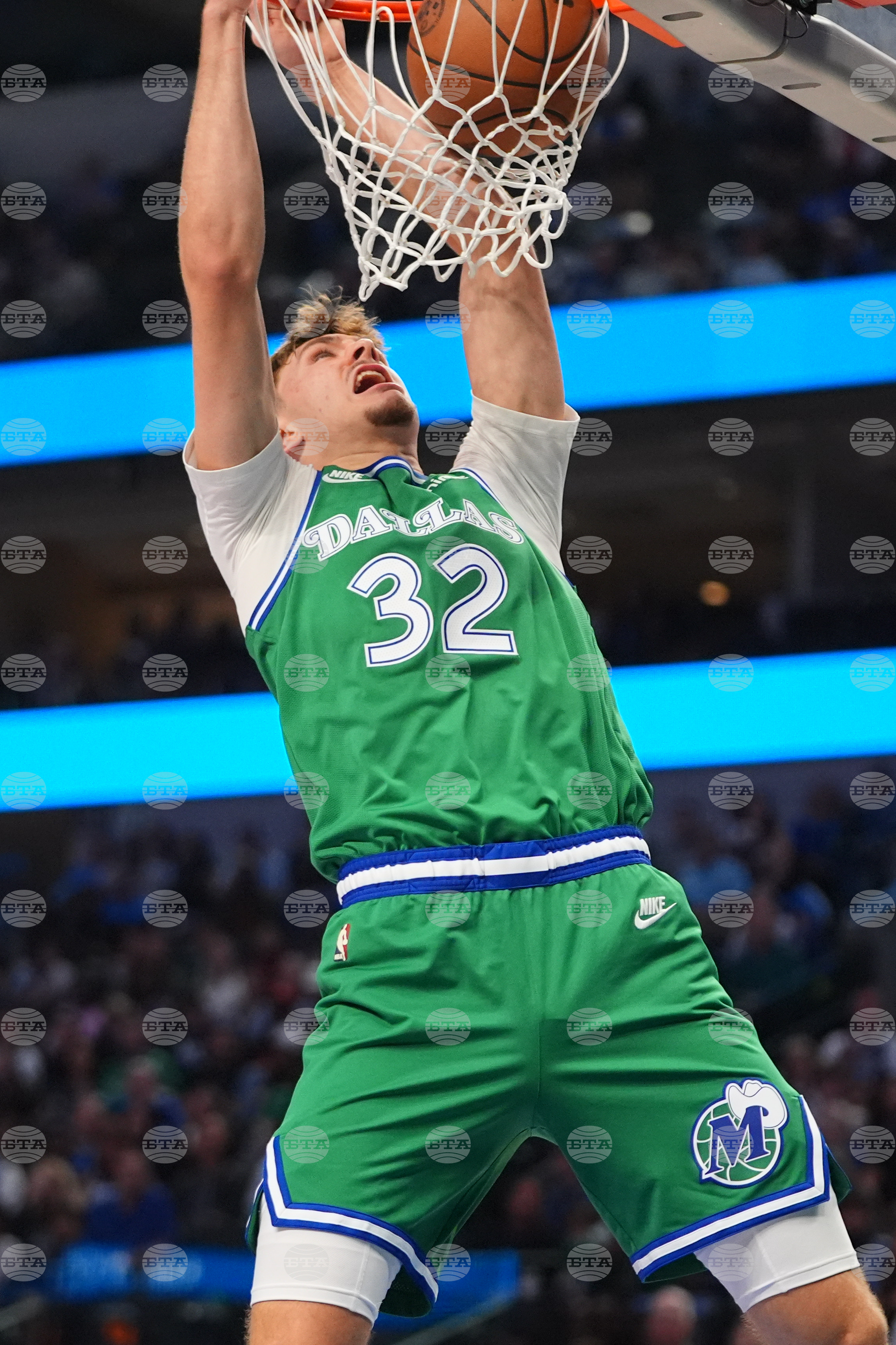 Toronto Raptors forward Sandro Mamukelashvili (54) scores during the first half of an NBA basketball game against the Dallas Mavericks in Dallas, Sunday, Oct. 26, 2025. (AP Photo/LM Otero)