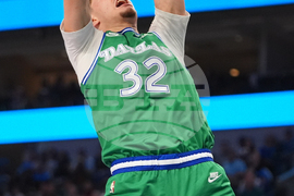 Dallas Mavericks forward Cooper Flagg slam-dunks during the first half of an NBA basketball game against the Toronto Raptors in Dallas, Sunday, Oct. 26, 2025. (AP Photo/LM Otero)