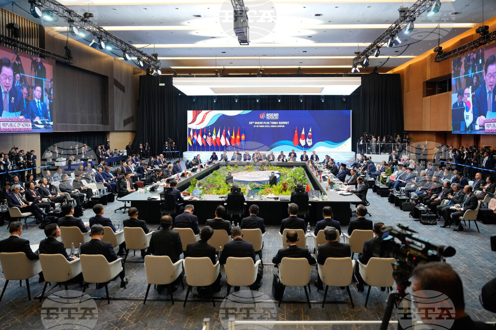 Leaders attending the 28th ASEAN Plus Three Summit in Kuala Lumpur, Malaysia, Monday, Oct. 27, 2025. (AP Photo/Vincent Thian, Pool)