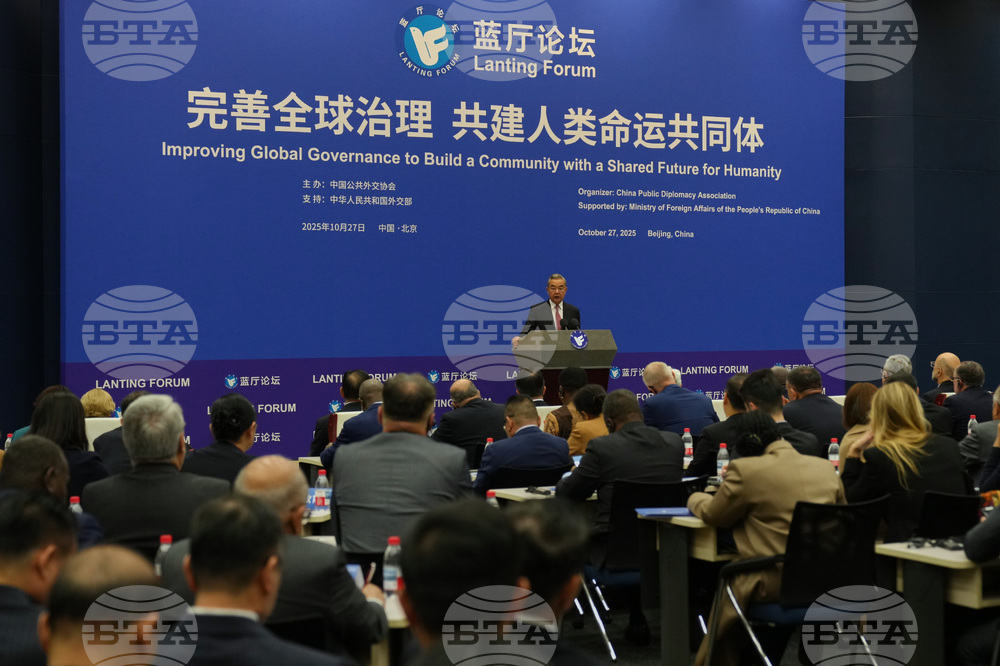 Chinese Foreign Minister Wang Yi delivers his opening remarks at the Lanting Forum on Improving Global Governance to Build a Community with a Shared Future for Humanity, at the Ministry of Foreign Affairs office, in Beijing, Monday, Oct. 27, 2025. (AP Photo/Andy Wong)
