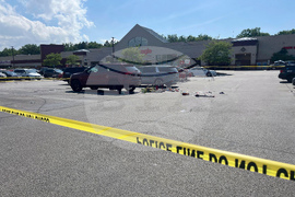 FILE - Crime scene tape is seen June 3, 2024, where a 3-year-old boy was fatally stabbed by a woman as he sat in a grocery cart in this Giant Eagle supermarket parking lot in North Olmsted, Ohio. (Hannah Drown/Cleveland.com via AP, File)