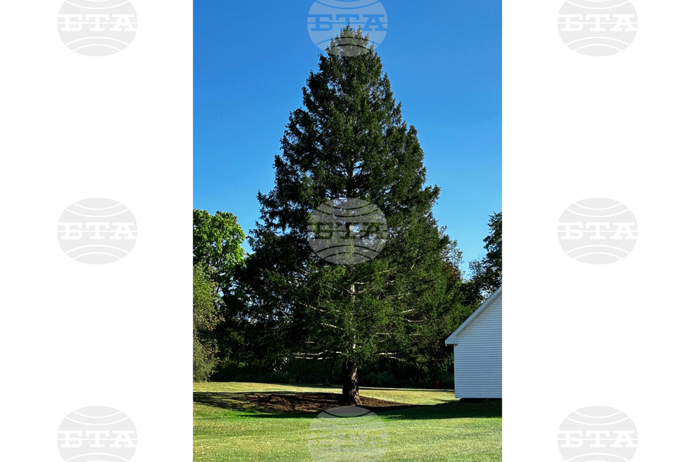 This photo provided by Tishman Speyer on Monday, Oct. 27, 2025, shows this year's Rockefeller Center Christmas tree before it is cut down in East Greenbush, N.Y. (Tishman Speyer via AP)