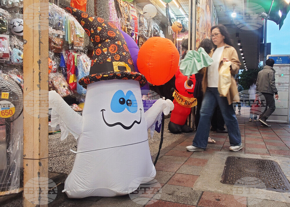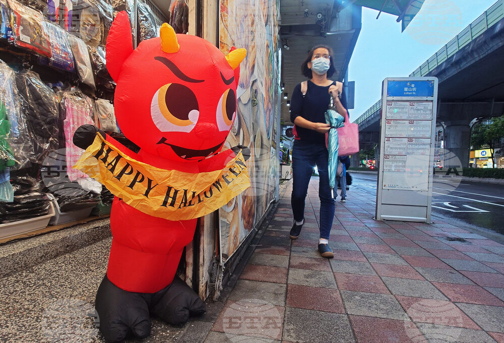 A store displays Halloween decorations at its entrance in Taipei, Taiwan, Tuesday, Oct. 28, 2025. (AP Photo/Chiang Ying-ying)
