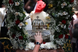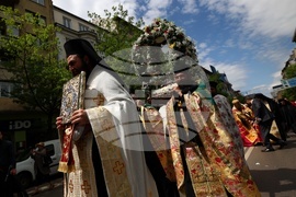 София (23 май 2022) С литийно шествие от кръстовището на бул. „Христо Ботев“ и бул. „Александър Стамболийски“ се пренасят светите мощи на равноапостолните братята Кирил и Методий в митрополитския катедрален храм „Света Неделя“.